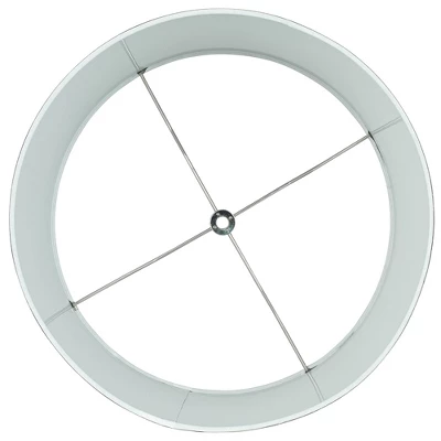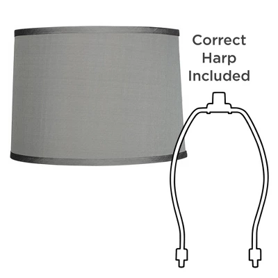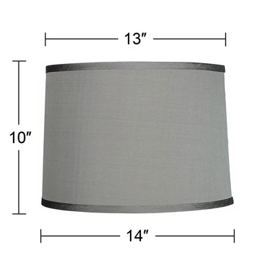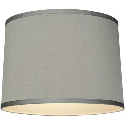 - Platinum gray color faux silk drum lamp shade with ribbon trim.