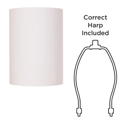 This set of two small drum shade features a deep cylinder shape. White cotton material adds a rolled edge for a hint of dimension. Spider fittings come in a white finish to match. The correct size harp is included free with each shade.