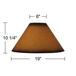 - Set of 2 lamp shade. Each is 6″ across the top x 19″ across the bottom x 12″ on the slant x 10 1/4″ high.