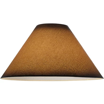 - Faux paper lamp shade material with a rustic, distressed finish.