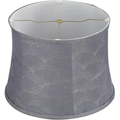 - Gray fabric shade with a gingko leaf pattern and a pinched drum profile. Polyester fabric. From the Springcrest brand.
