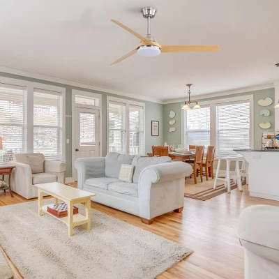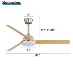 52 Inch Ceiling Fan with Light Color: Light Woodgrain Blades/ Brushed Nickel Body Blade Material: ABS Blades Size: 52″ Light Source: 3CCT LED 22W Special Feature: Timer Certification: ETL Downrod: 50″/10″/24″ Room Type: Farmhouse, Restaurant, Rustic, Garage, Living Room, Bedroom, Home Office, Kids Room, Balcony, Cabinet, Garage, Garden, Home, Shop, Dining Room High Quality Ceiling Fan, delivering powerful airflow and ensuring years of quiet performance. With its durable and modern design, this 52-inch ceiling fan is perfect for medium to large-sized rooms ranging from 160-360 sq.ft. Reversible Ceiling Fan Quiet Energy saving, Function Includes Forward and Reverse for Summer and Winter 2 Airflow Modes, Cooling In Summer and Keeping Warm in Winter. Modern 52 Inch Ceiling Fan This modern ceiling fan with light, each piece is carefully designed and crafted with great quality ABS blades. It gives the indoor/outdoor decor a touch of luxury and refinement.