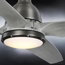 Modeled to reflect aircraft propeller blades, the Bunbury Collection seeks to create a smooth blend of traditional styles with the timeless nostalgia and functional practicality of aeronautical engineering. From their metallic structure to the cleanly trimmed curves that define their frames, these fixtures promise to deliver a bold statement and bold performance in any space. These fixtures are defined by the clean detailing evident in every part from the conical metallic canopy to the curved acrylic blades. Even the motor housing boasts clean curves that are only interrupted by the blade ring and the studded round light diffuser housing.