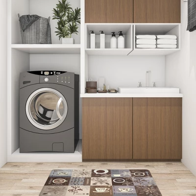 - Multi-purpose:Kitchen mats widely used for home decor,indoor front welcome mat,kitchen rug,laundry room,standing desk,back doors,garage,office. Nonskid backing holds the mat in place for extra safety.