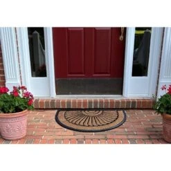 A1HC Natural Coir And Rubber Half Round Door Mat 30”x48”, Non-Slip, Thin Profile Heavy Duty Doormat